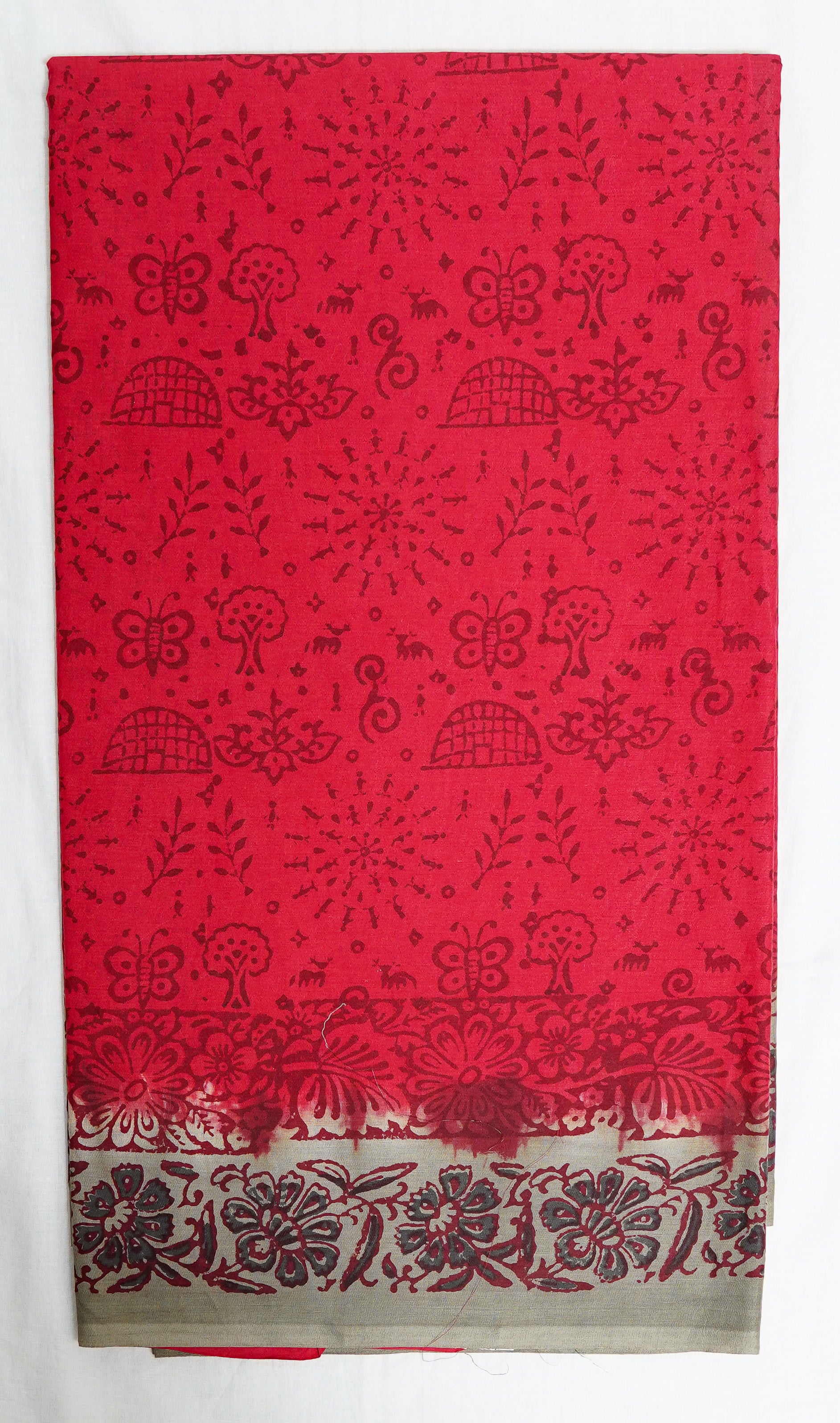 • Blouse Fabric: Unstitched matching cotton fabric with woven border