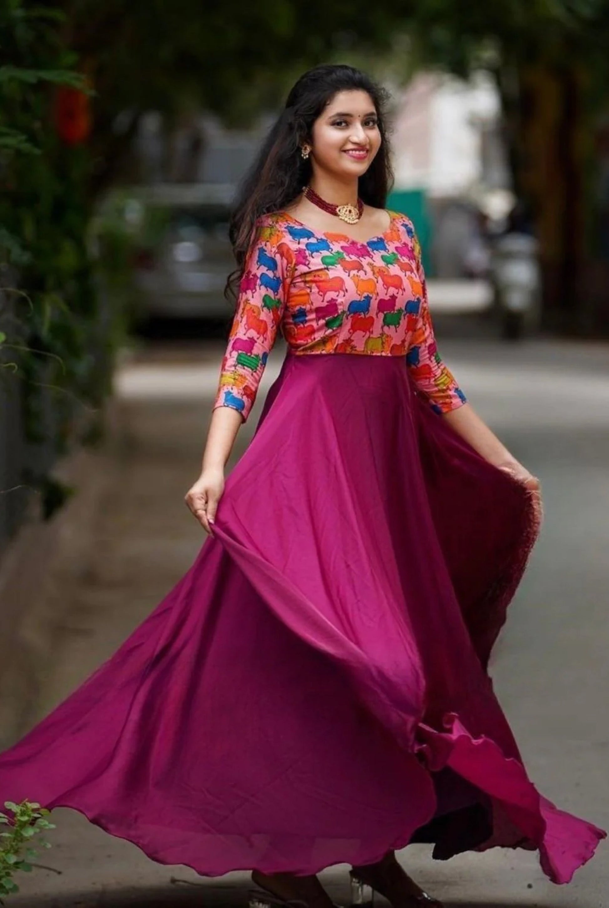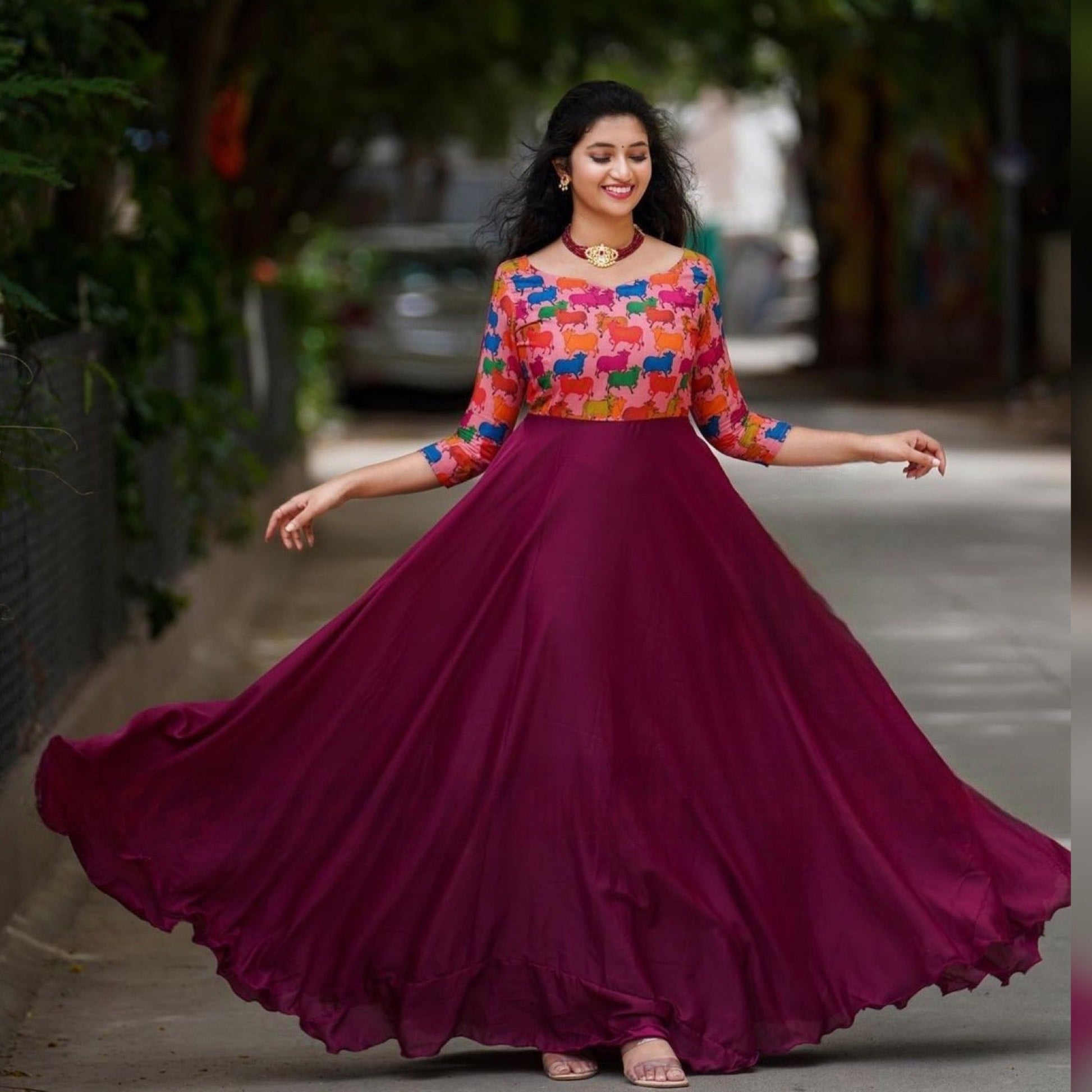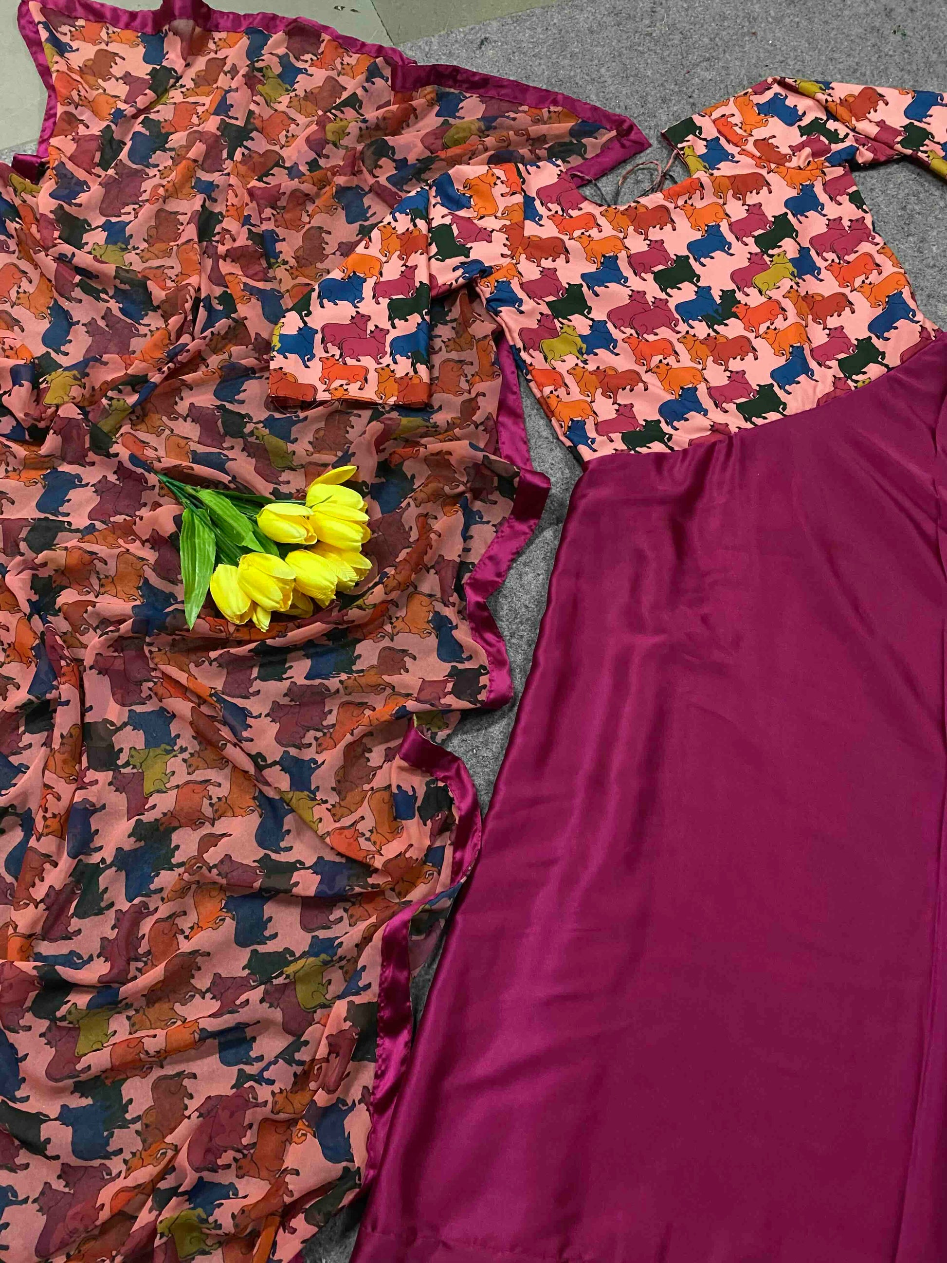 - Gown Fabric :- Japan Satin With Digital Print Sleeves