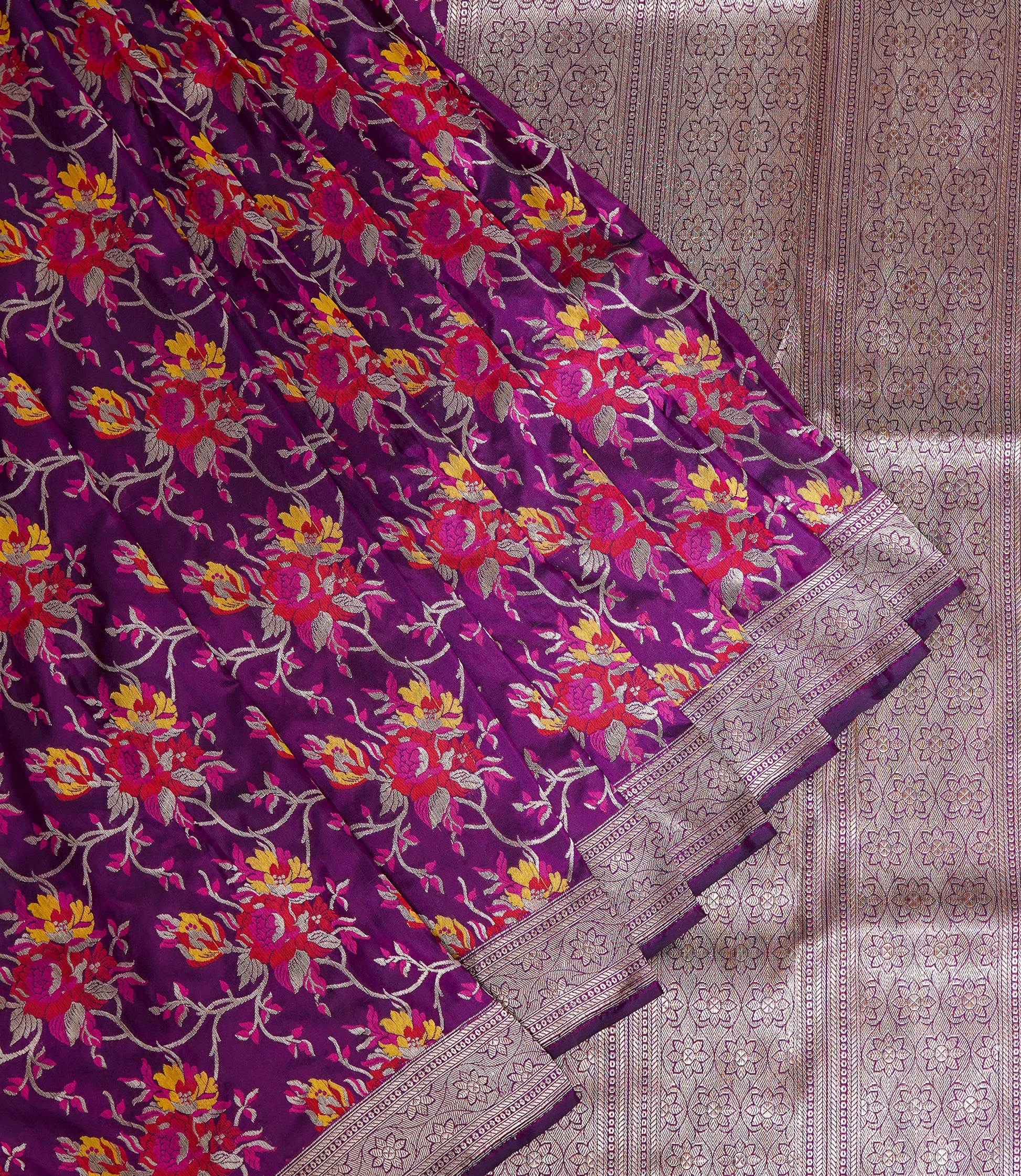 - Weaving Type: Traditional Katan with Meenakari or floral motifs